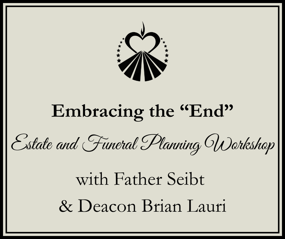 Estate Planning 101 - Organizing Important / Legal Documents - Making End-of-Life Decisions - Funeral Planning & More! Learn what the Catholic Church teaches. Save $12,000! Open to everyone, especially those over 60 and those with aging parents. Bring something to take notes.
